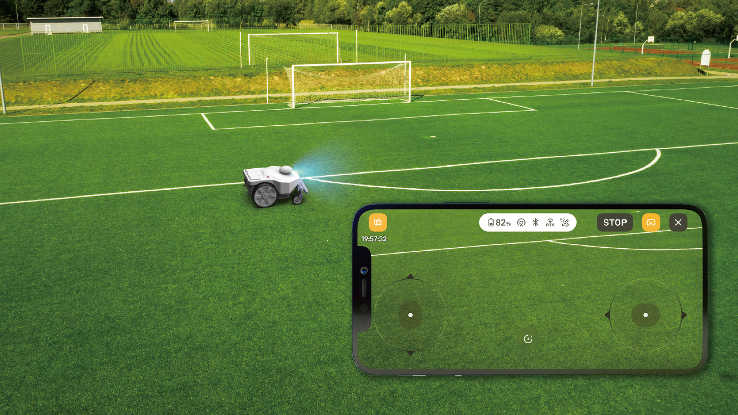 - Pin-sharp accuracy: RTK + Vision holds a 2.5 cm line under trees, along fences, and around gardens.