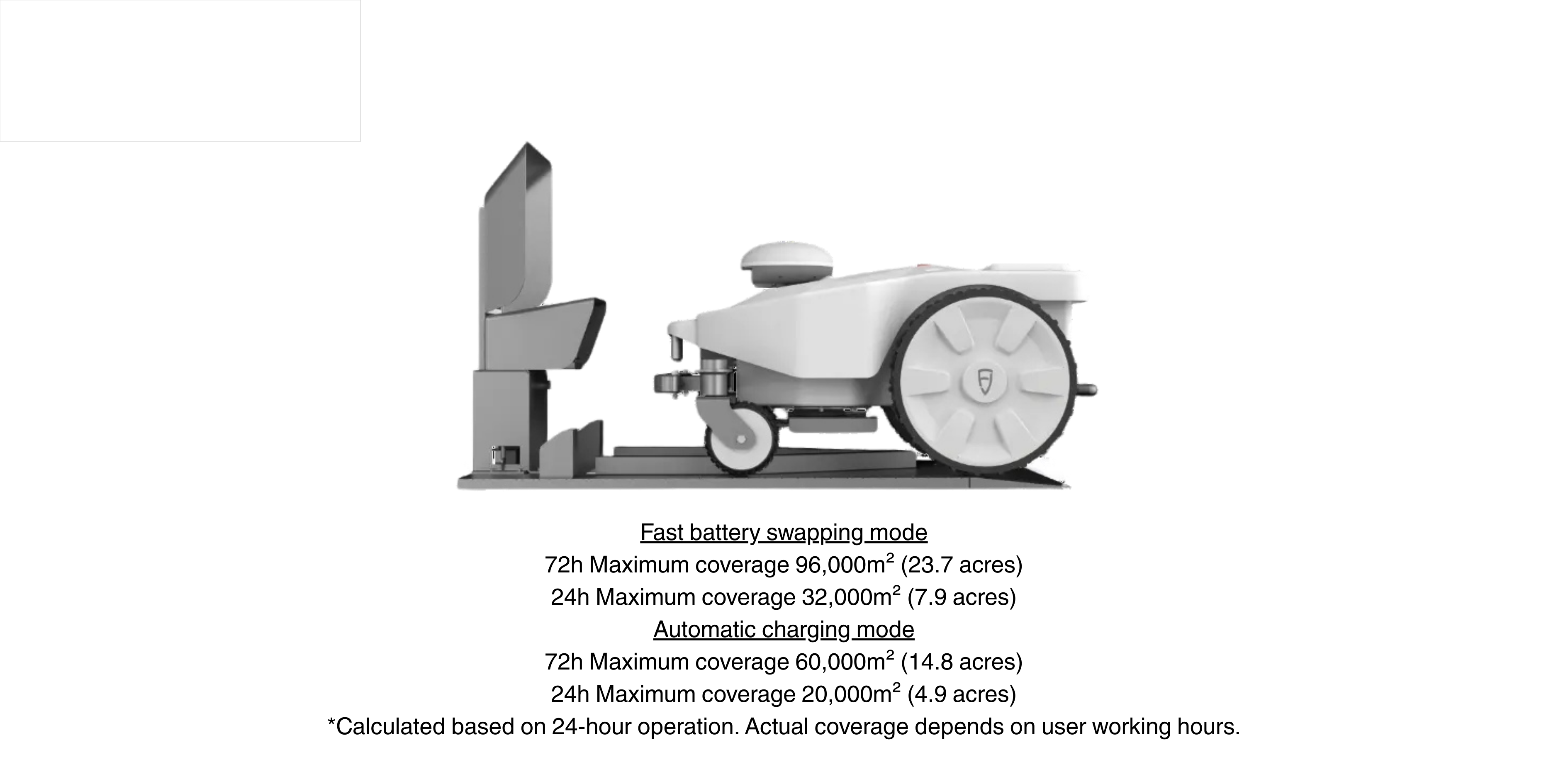 - Big-area performance: up to 96,000 m² in 3 days with fast-swap operations or 60,000 m² in 3 days with auto-charging mode (multi-field/fleet-ready).