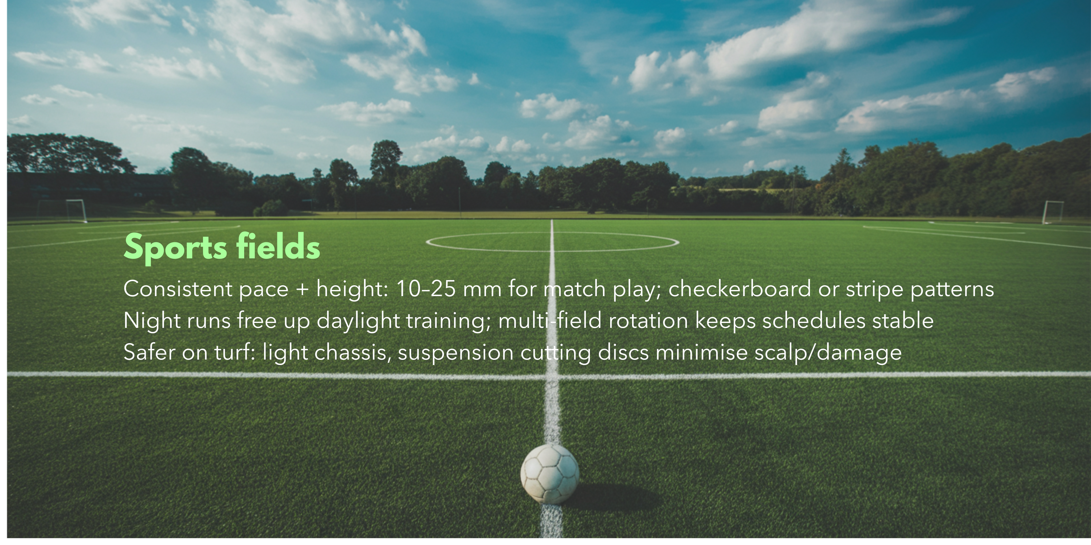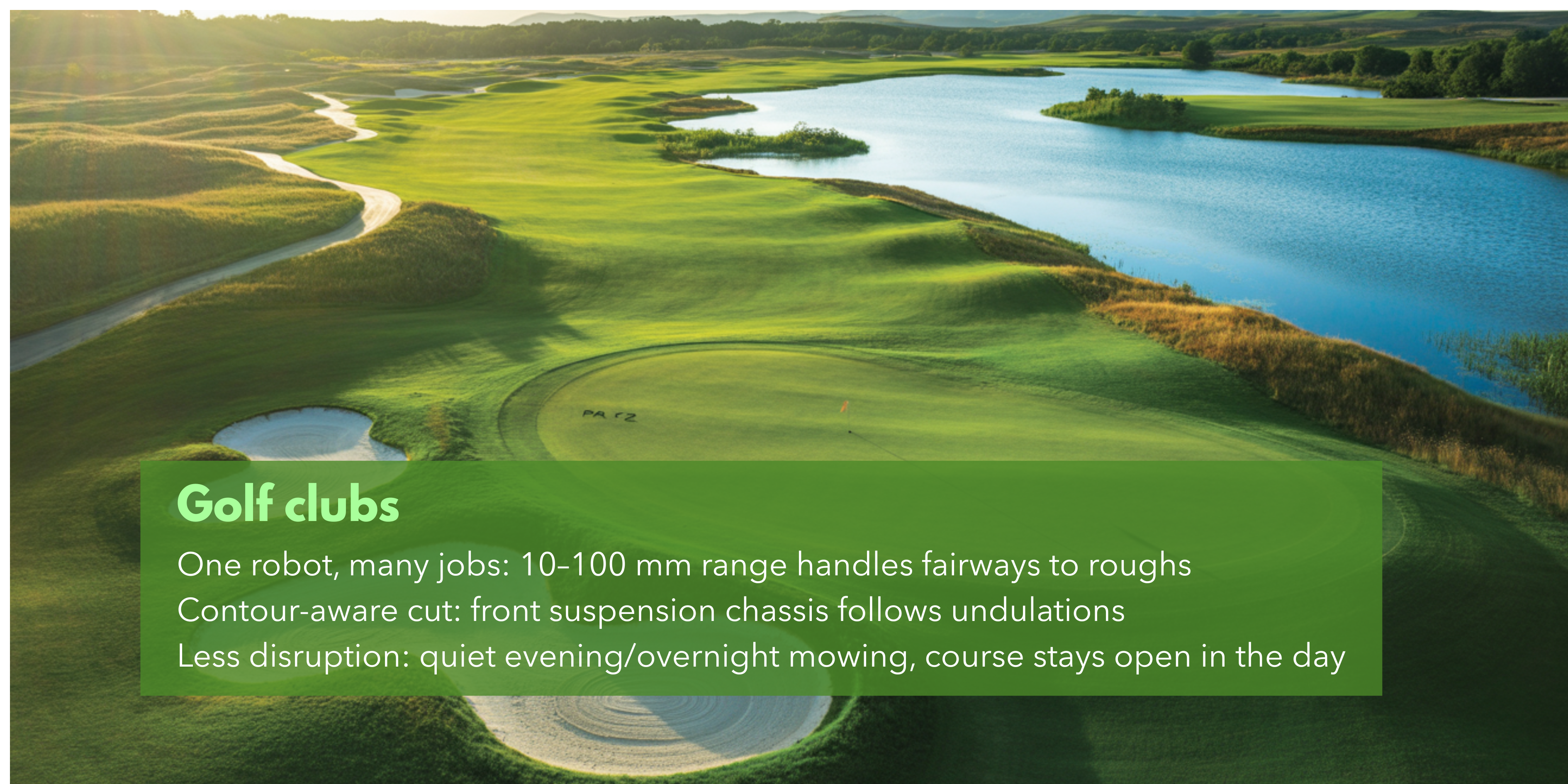 Championship-grade turf, 24/7. RTK+Vision. 10–100 mm cut height.