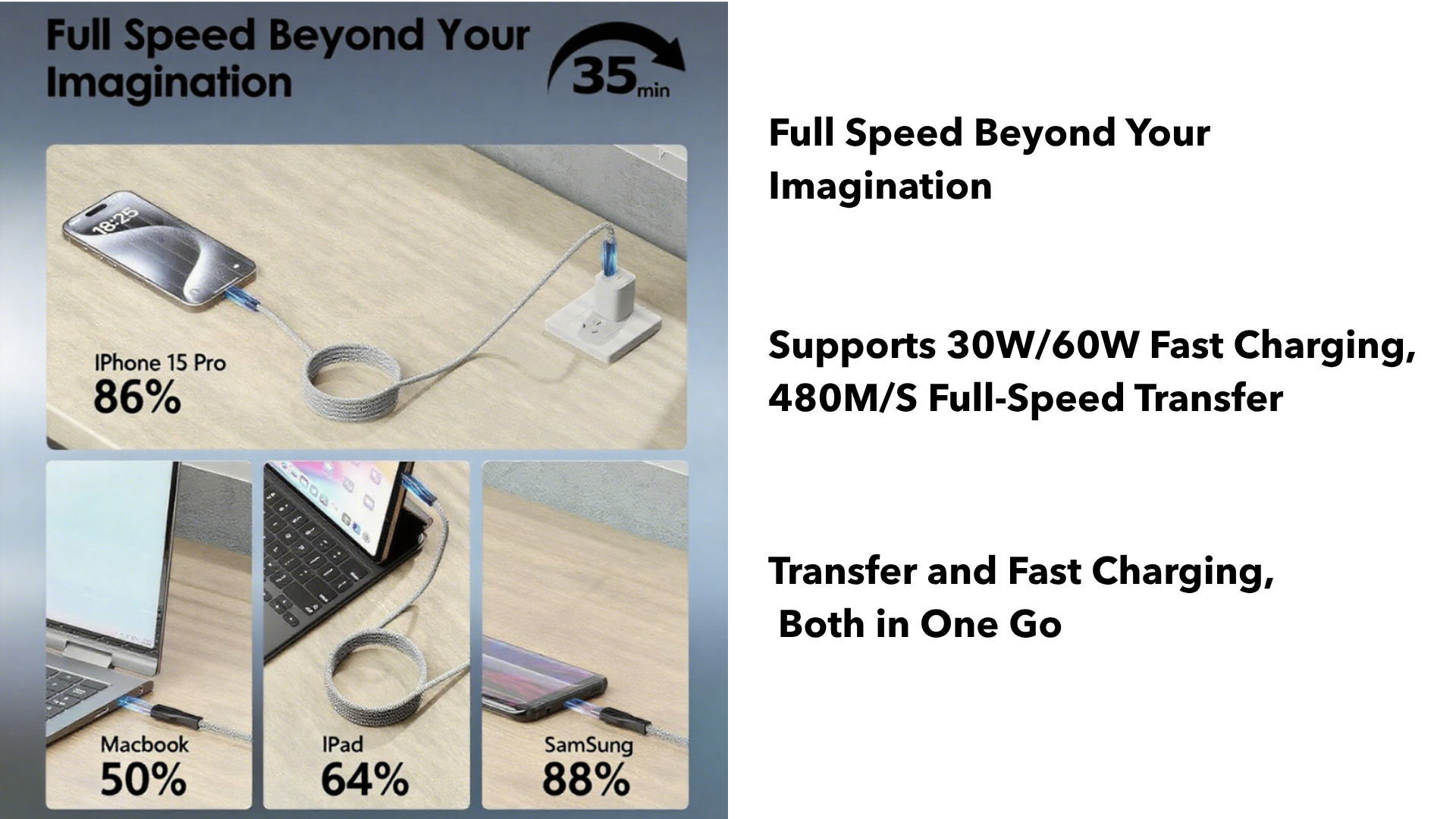 • Supports up to 240W fast charging—powerful enough to charge your laptop, tablet, or smartphone at maximum speed.