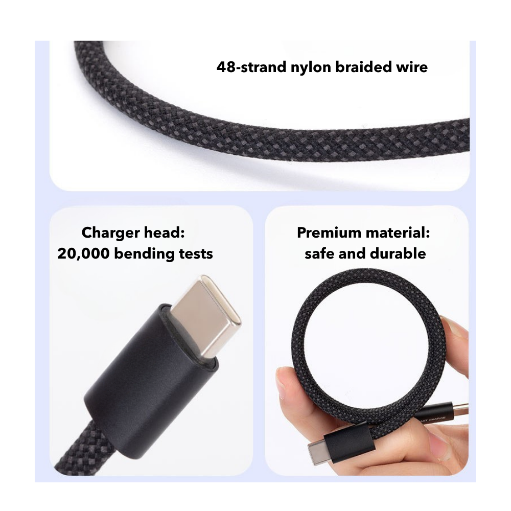 • Durable Nylon Braiding: Reinforced braided exterior offers resistance to bending, tearing, and daily wear.